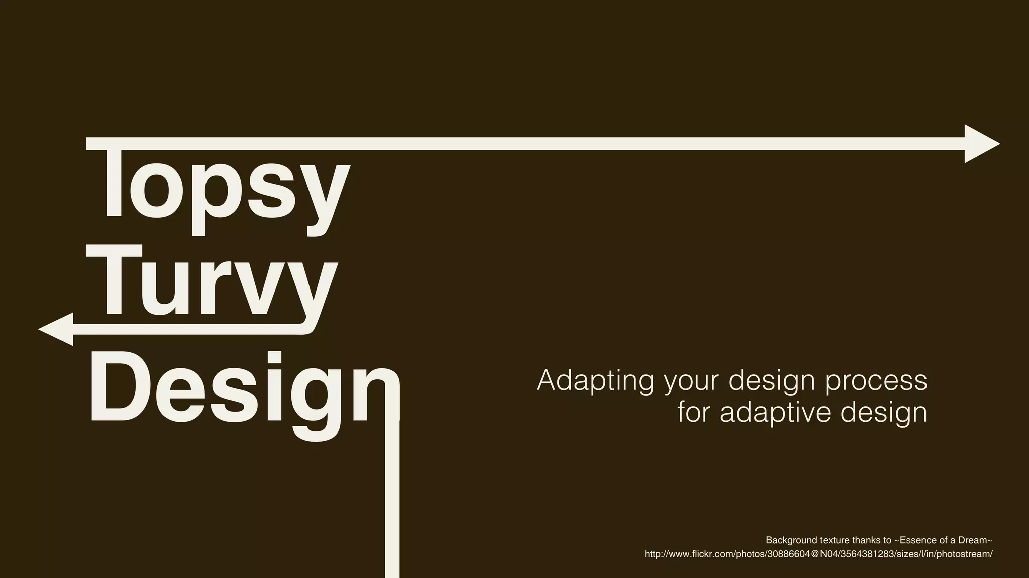 The document discusses adapting the traditional web design process for adaptive or responsive design. It notes that the traditional process is very print-focused and not suited for modern web design. It argues that web designers are constantly asked to change and learn new techniques. However, adaptive design only requires learning one new thing - media queries. From a technical perspective, it is relatively easy to implement once media queries are understood. The document provides tips on how to take a traditional design process and make it adaptive by starting from the outside and working in, and coding from the inside out. It also addresses issues with supporting older versions of Internet Explorer.