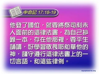 申典历史是由德国神学家Martin Noth于1943年提出的概念,主要分析以色列历史的先知和祭司视角。它既包括中央圣所的敬拜与人伦关系,又强调宗教行为的真伪,描绘以色列王朝的兴衰与神的应许。文中还探讨了中国文化中的五伦和华表,以及人面临神话语的挑战与信仰历程。