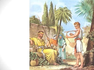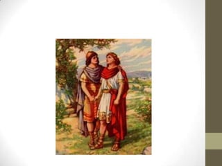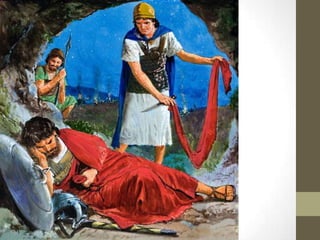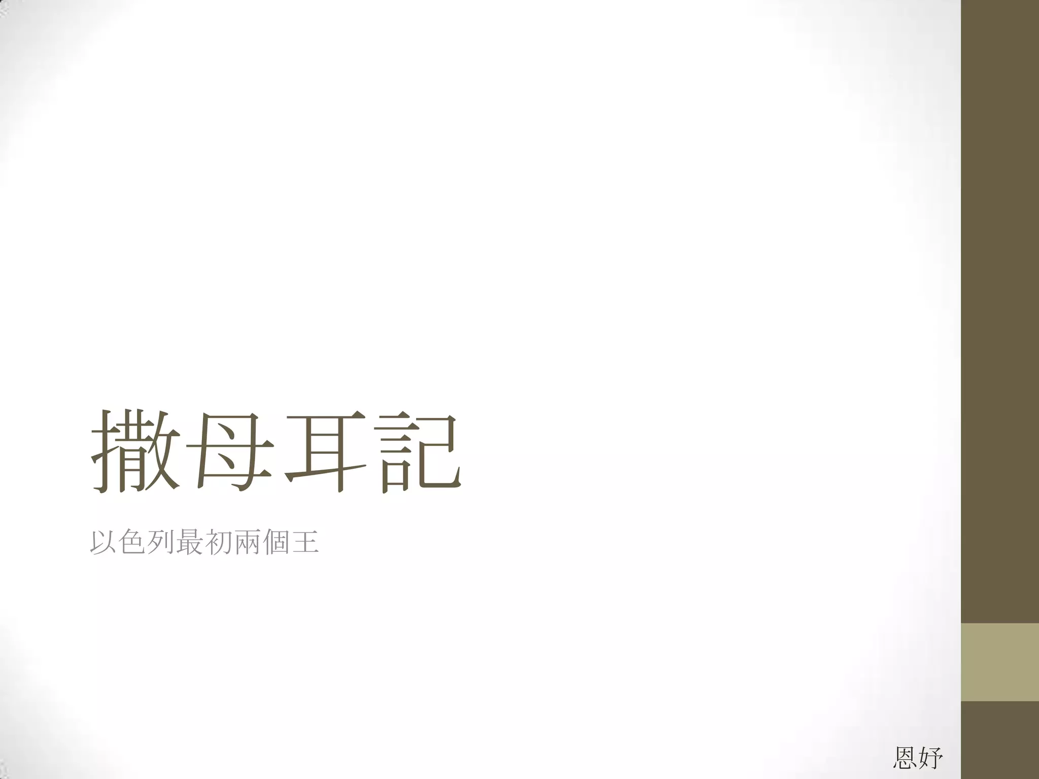 《撒母耳记》记录了以色列最初两个王的故事,涵盖了约150年的历史,由先知撒母耳的视角叙述。主要角色包括撒母耳、扫罗和大卫,分别代表士师、第一位君王和合神心意的人。文中探讨了神的呼召与王权的建立,强调人心与外表的不同,以及家庭与国家的命运。