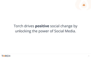 Torch provides a platform to track and analyze social media conversations. It aggregates data from over 1.6 million verified advocacy groups, foundations, elected officials, and activists. This allows organizations to understand discussions and influencers to engage more effectively on issues. The platform delivers real-time intelligence reports, search and filtering tools, and branded exports. It helps with tasks like risk management, relationship building, and fundraising. Competitors lack Torch's exclusive focus on public sector voices and geo-targeting capabilities. The company is led by an experienced CEO with decades working in communications and philanthropy.