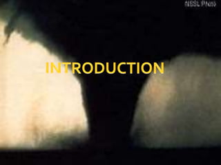 A tornado is a violently rotating column of air that extends from a thunderstorm to the ground. They come in different shapes and sizes, with wind speeds that can exceed 300 mph. The deadliest tornadoes include the 1925 Tri-State Tornado that killed 695 people across multiple US states over 219 miles, and the 1989 Daulatpur-Saturnia Tornado in Bangladesh that killed over 1,300 people and destroyed 90% of homes across a 50 mile path. Proper tornado safety is to seek shelter in a basement, interior room or the lowest level of a building.