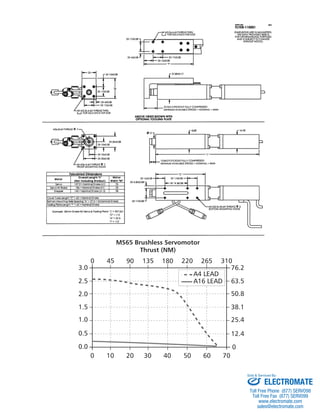 The MS65 Linear Actuator is a compact actuator ideal for applications where space is limited, such as medical and semiconductor equipment. It provides thrust up to 65 lbf and speeds up to 10 in/sec in an incremental stroke of up to 5.9 inches. It has available ACME or ball screws and optional mounting configurations, making it suitable for a variety of applications.