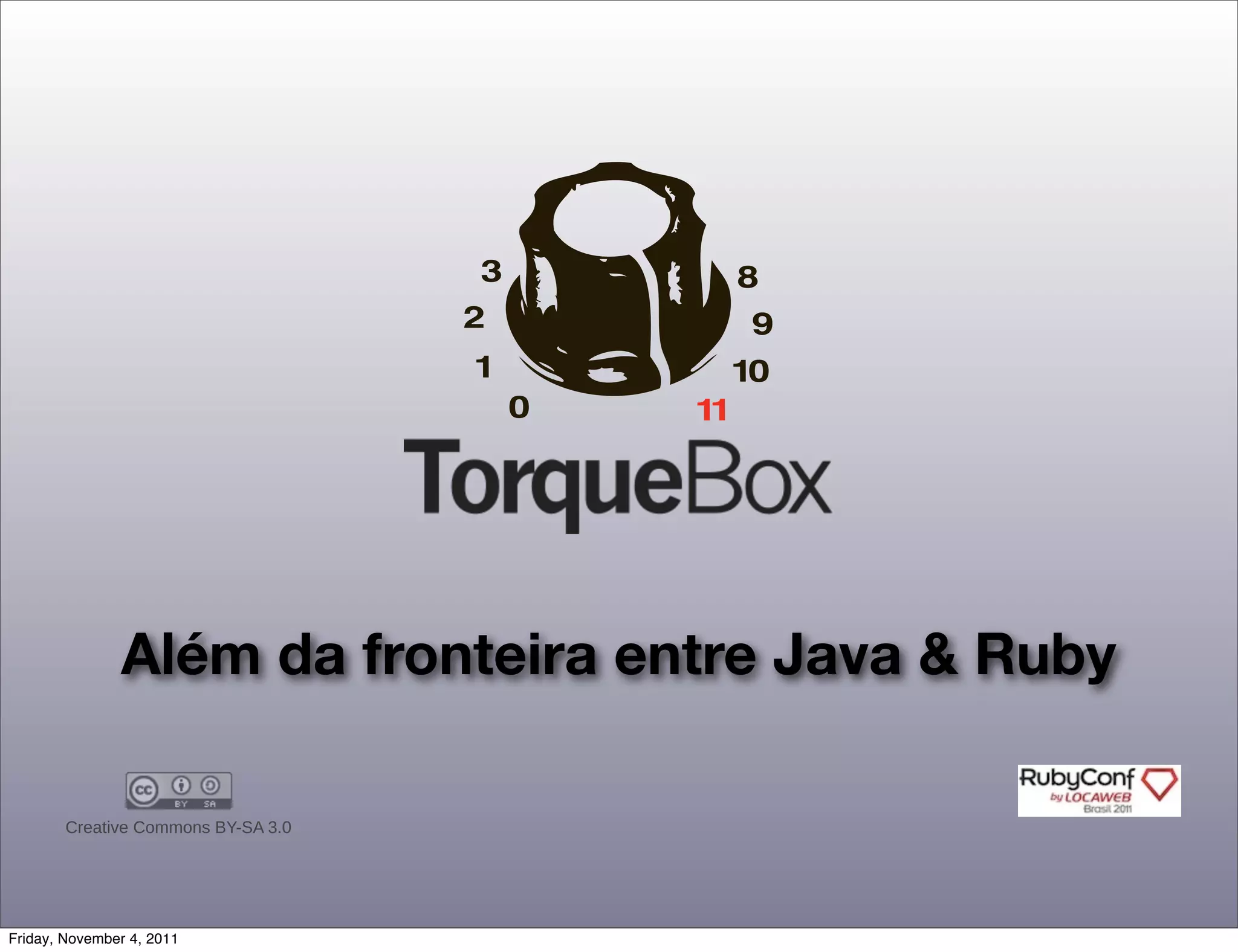 The document discusses Java and Ruby programming languages and the TorqueBox framework. It provides an overview of TorqueBox which allows running Ruby on Rails applications on the JBoss Application Server using the JRuby implementation of Ruby. It covers installing and deploying applications with TorqueBox, using features like caching, clustering, and Infinispan for distributed caching.