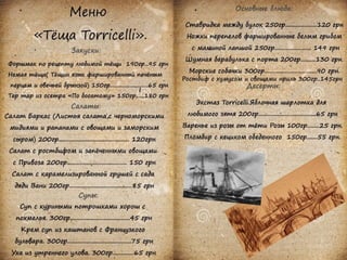Ресторан «Теща Торричели» в Одессе основан на рецептах тещи архитектора Торричелли, ставя акцент на одесской кухне. Ресторан предлагает 80 мест, разнообразное меню и использует местные продукты, с целью окупаемости в 12-15 месяцев при средних затратах на открытие в 4,7 миллиона грн. Операционные показатели ресторана включают фудкост 32% и оборачиваемость стола 5 посадок.