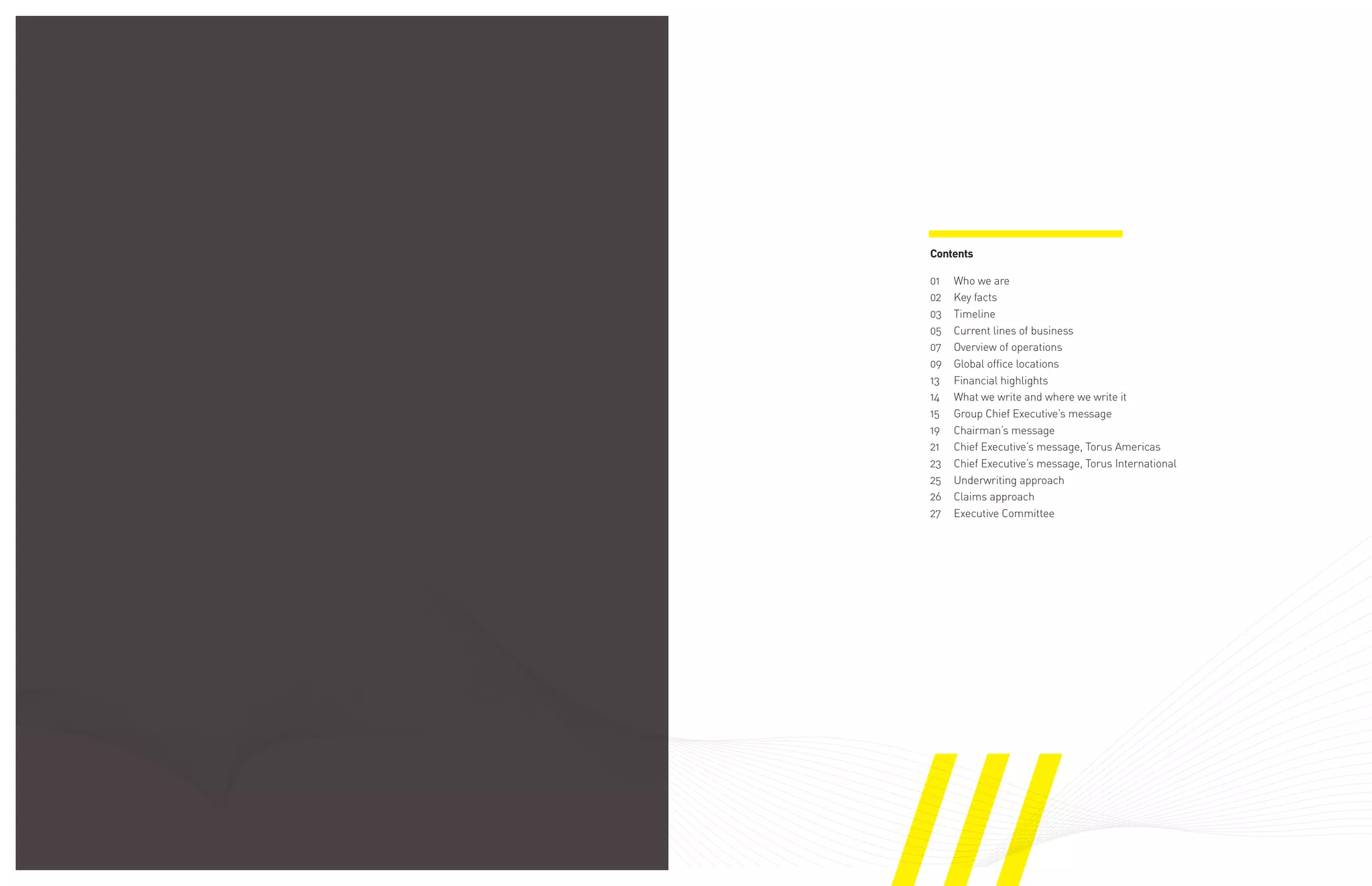 Torus is a global specialty insurer with over 500 employees across 16 offices worldwide. It offers 25 product lines across property, casualty, and specialty insurance. Torus has experienced strong growth since launching in 2008, both organically and through acquisitions, with gross written premium reaching nearly $1 billion in 2011. It operates through regulated insurance companies in Bermuda, Europe, and the US, as well as two Lloyd's syndicates.