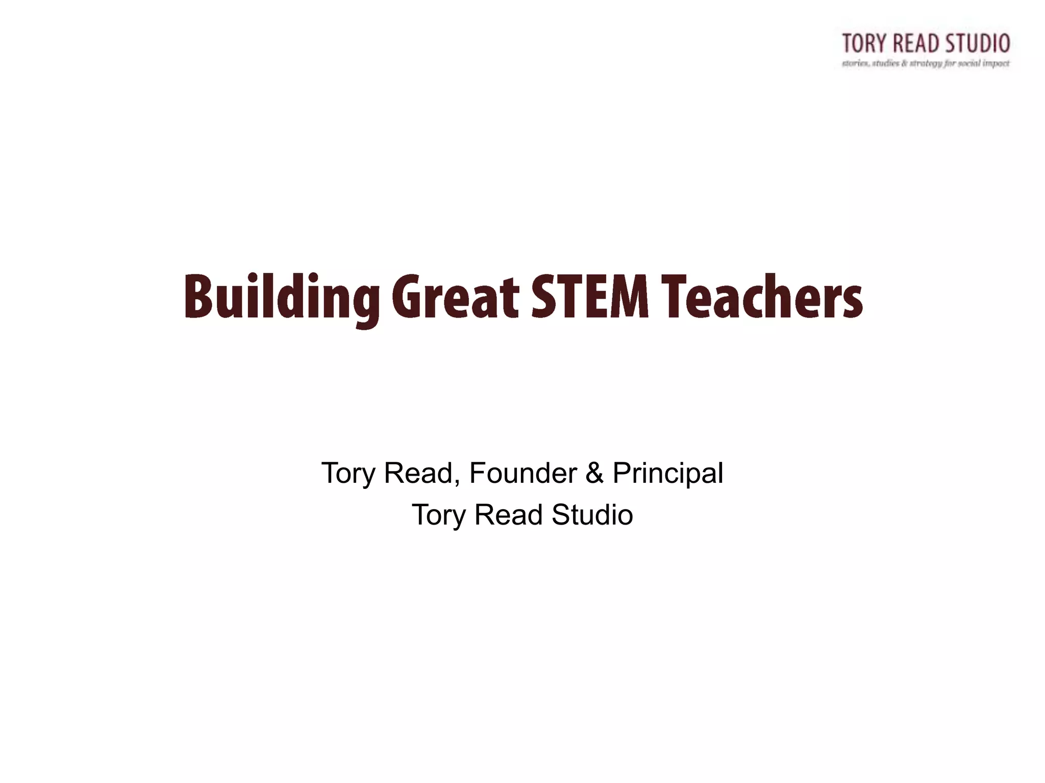 The document discusses recommendations for improving K-12 STEM teacher training and development in California. It finds that current teacher training is disjointed and does not adequately prepare teachers in math and science content or skills. The key recommendations are to create a coherent, progressive system of teacher training that integrates content, pedagogy and clinical practice; increase the math and science capacity of teacher training programs; and form strong partnerships between teacher preparation programs and school districts. Revising standards and linking credentials to demonstrated competencies are also recommended. The goal is to transform the system to better support great STEM teachers and produce STEM-literate students.