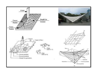 1. Large span structures provide large column free spaces using structural systems like trusses, space frames, shells, and folded plates.