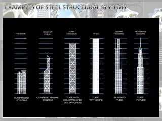 3. Examples of large span structure systems include shell structures, steel space frames, barrel vaults, and hyperbolic paraboloids which use bending, tension, and compression to span long distances.