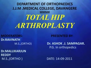 - The procedure has evolved significantly since the early attempts in the 1900s using materials like gold foil and glass. Modern THA designs aim to reduce friction and stress on the implants.