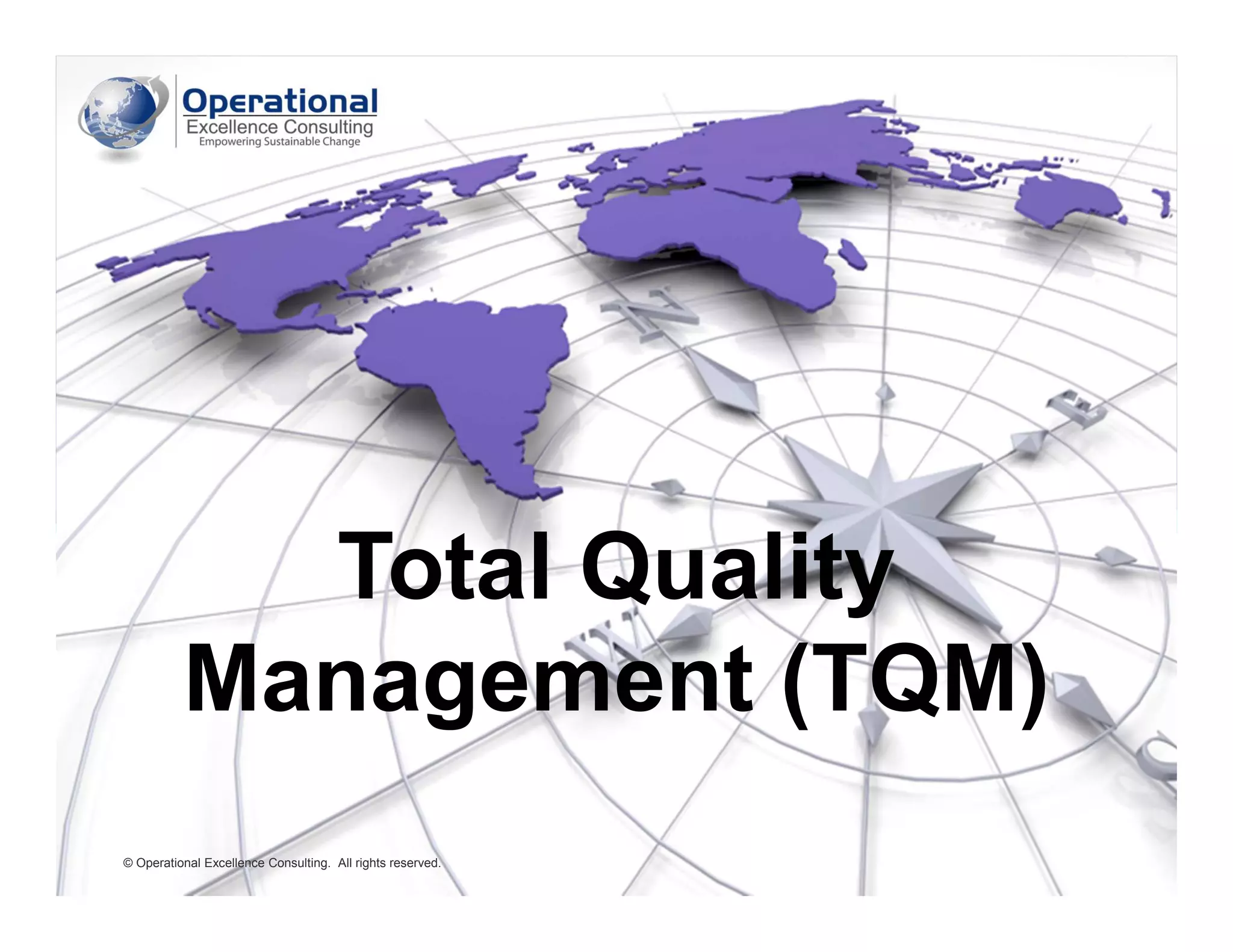 The document provides an overview of Total Quality Management (TQM). It outlines the key components of a TQM program including customer focus, employee involvement, process management, and continuous improvement. It also discusses quality gurus like Deming, Juran, and Crosby and quality models like the Baldrige criteria. The goal of TQM is to achieve high levels of customer satisfaction through company-wide quality efforts and employee engagement.