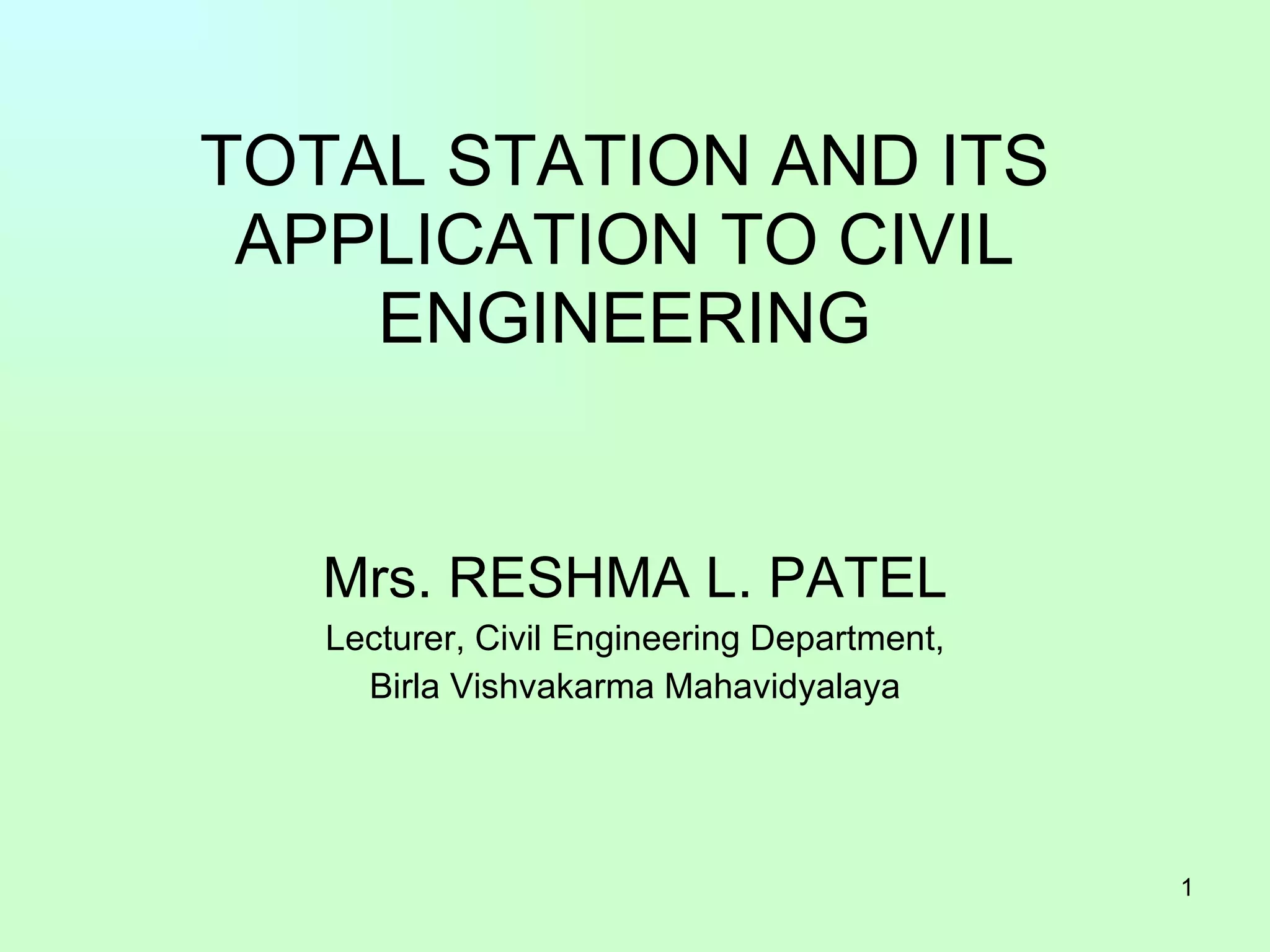 Total stations are surveying instruments that combine an electronic theodolite, electronic distance meter, and on-board computer. They allow users to measure horizontal and vertical angles as well as slope distances to calculate coordinates. Modern total stations can store thousands of data points, perform computations, and transfer data remotely via memory cards or wireless connections. They have largely replaced standalone theodolites and distance meters due to greater accuracy, automation, and data processing capabilities. Total stations find wide application in civil engineering, mining, accident reconstruction, and other fields requiring precise spatial measurements and positioning.