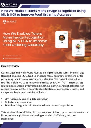 "Working with Actowiz Solutions on Toters Menu Image Recognition using ML