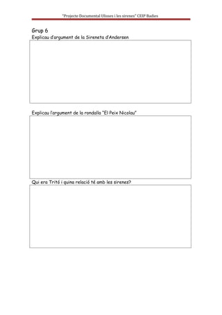 Feines de cada grup 1. “Projecte Documental Ulisses i les sirenes” CEIP Badies