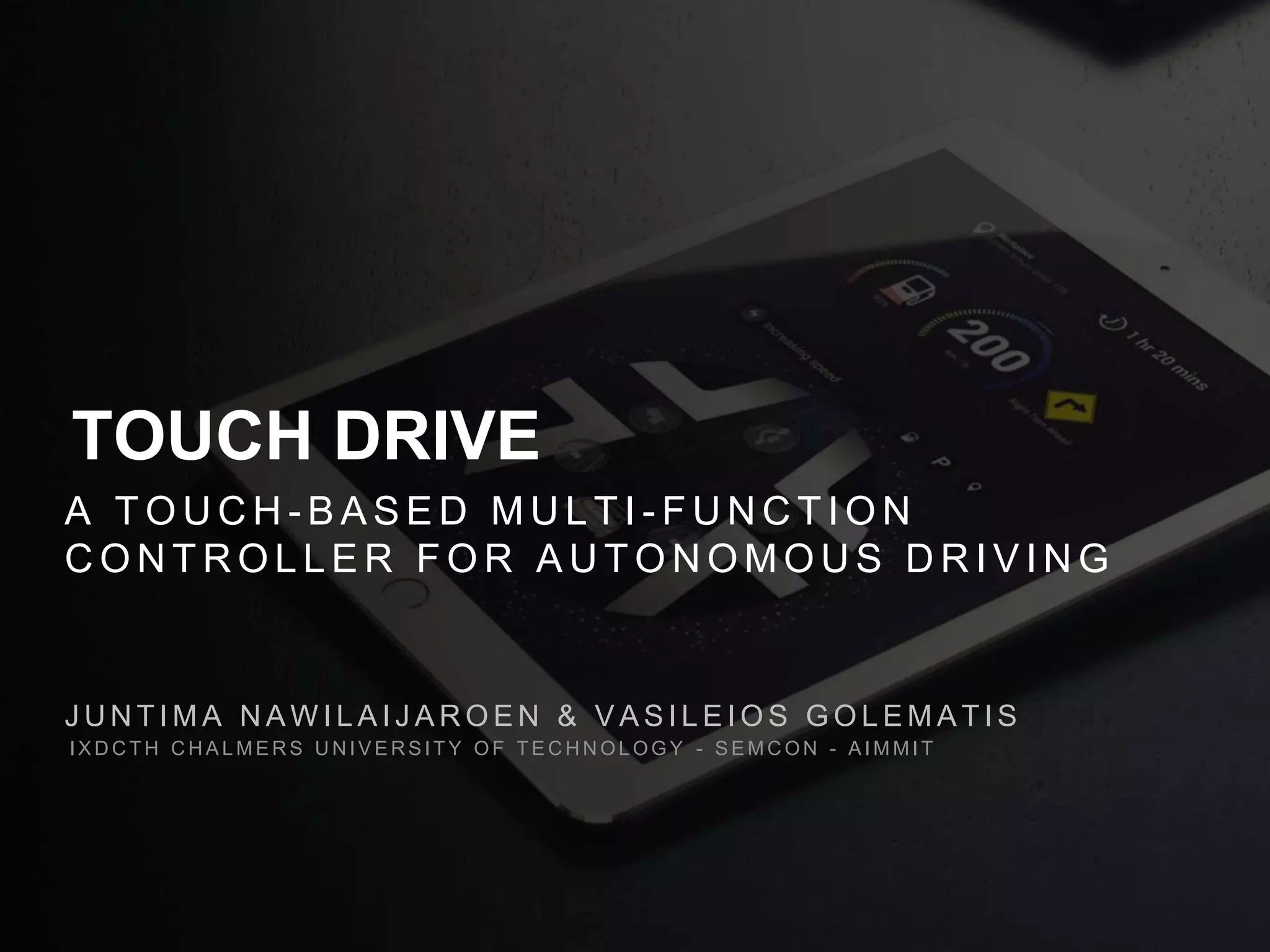 The document discusses the development of a touch-based multi-function controller for autonomous driving, aiming to enhance driver interaction and efficiency. It outlines research questions related to the design and functionality of the interface, user studies, and design iterations, highlighting the importance of feedback and usability. The findings emphasize the necessity of intuitive design and user involvement in creating effective interfaces for autonomous vehicle operation.