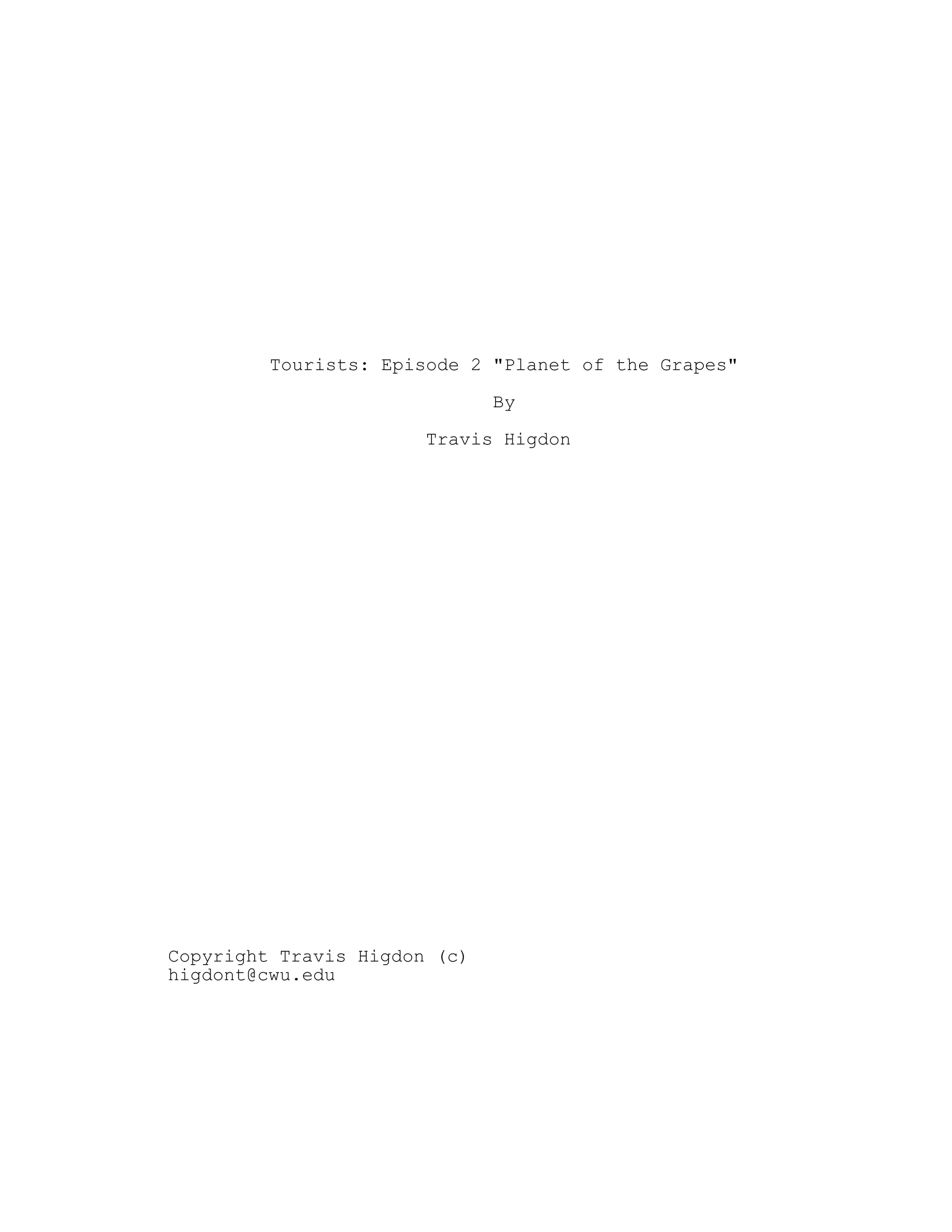 The document is a script for an episode of a television show about three friends who accidentally travel through time after messing with their friend's uncle's time machine. They end up on a planet inhabited by intelligent apes. One friend's fart causes them to be captured and placed in cages. They are taken to an ape colosseum, where they fear they will have to fight. Their other friend fell out of the cage during transport and it is unknown if he survived.