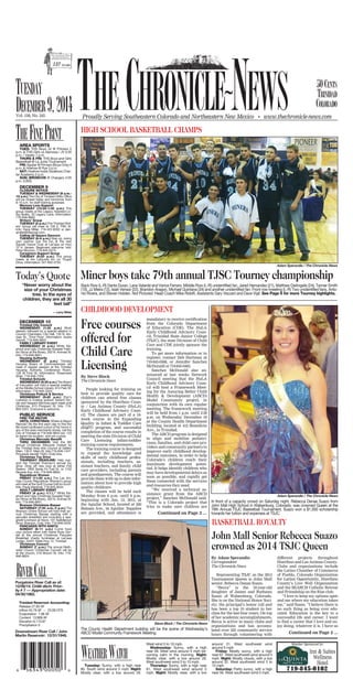 This document is a newspaper listing local community events and activities for Trinidad, Colorado. It includes notices for city council meetings, library events, school board meetings, sports games, religious services and more happening from December 9th to the 17th. It also features a short article about free early childhood development courses being offered to help people meet licensing requirements for childcare providers.