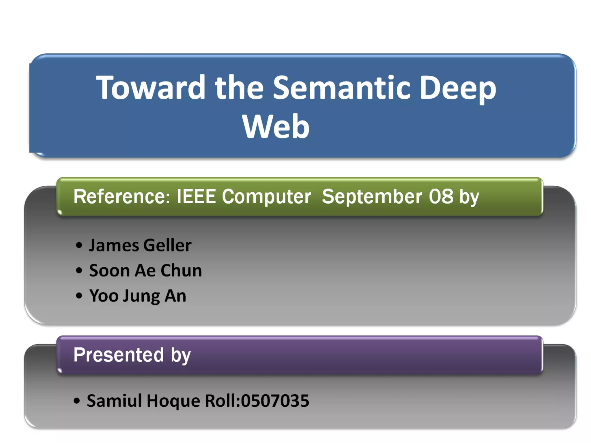 The document discusses using semantic technologies like XML, RDF, and OWL to represent data on the web in a structured format that is accessible to machines. It describes two main approaches for accessing semantic data on the deep web: ontology plug-in search and deep web service annotation. Both approaches require a semantic web crawler or bot to harvest concepts from deep web forms and iteratively link them to build enriched ontologies that define domain terms and relationships to provide machine-interpretable meaning.