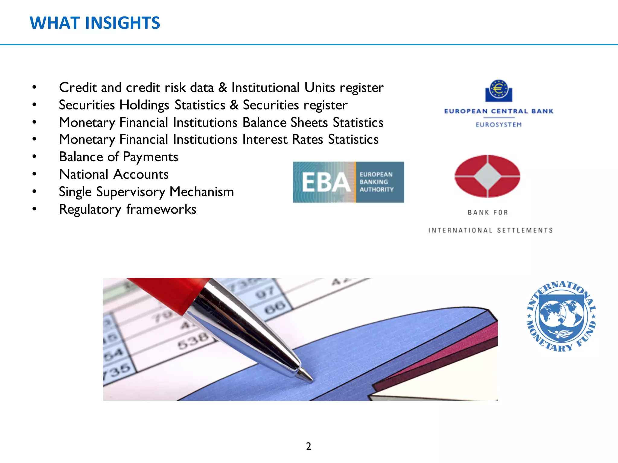 This document discusses intelligent data insights in central banks. It summarizes the data and statistical production processes used by central banks, including credit risk data, securities holdings, and monetary financial institution statistics. It also describes standardization efforts including validation and transformation languages to guide data extraction and processing. Finally, it provides examples of execution platforms used by the Bank of Italy to implement logical representations and transformations on statistical data.