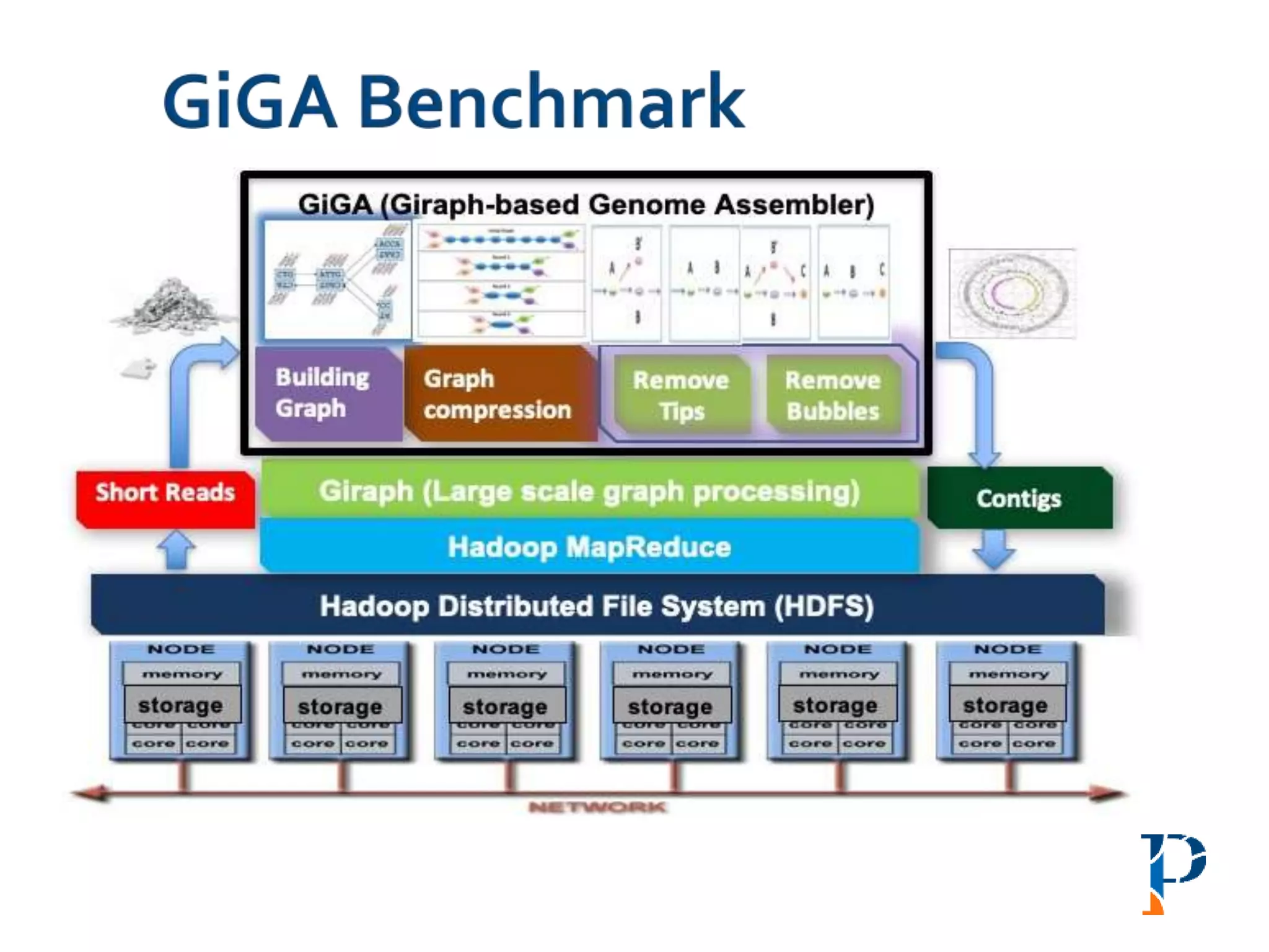The document discusses the challenges and methodologies in big data genome analysis, focusing on various aspects such as genome assembly, error correction, and the necessary cyberinfrastructure. It explores high throughput sequencing technologies, software and hardware challenges, and the evolution of big data processing frameworks like Hadoop and Graph Processing frameworks. Additionally, it presents performance evaluations of different algorithms and platforms for genomic data processing, highlighting the significance of distributed computing and error detection techniques.