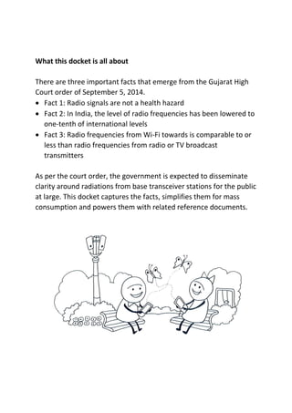 The Gujarat High Court ruling on September 5, 2014, concluded that radio signals from mobile towers, including Wi-Fi, are safe and not a health hazard, with exposure levels significantly lower than international standards. The judgment emphasized the need for the government to educate the public about the safety of these technologies to dispel unfounded fears. It also rejected activist claims regarding harmful effects of radiation, underscoring the lack of conclusive scientific evidence supporting such assertions.