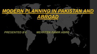Town planning aims to organize land use, buildings, and infrastructure to maximize economic and social benefits while maintaining beauty. Planners balance various needs like the environment, economy, and population. In Pakistan's history, early civilizations like Harappa demonstrated town planning principles. Modern Pakistani planning considers more sociological factors than just infrastructure layout. It focuses on convenient placement of amenities, recreational spaces, and land uses to improve people's lives.