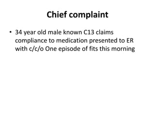 This clinical case describes a 34-year-old male with a history of HIV/AIDS who presented to the emergency room with a seizure. Imaging showed two ring-enhancing brain lesions suggestive of toxoplasmosis. He was treated with anti-toxoplasmosis medications as an inpatient but was non-compliant as an outpatient, resulting in recurrent seizures. Key challenges included limited medication availability and an inability to monitor his CD4 count over time due to being from a different region.