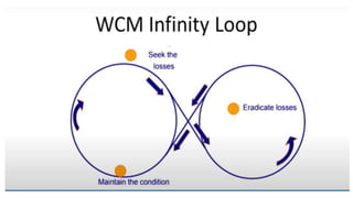 2. World Class Manufacturing introduced in 1984 focuses on continuous improvement, zero defects, breakdowns, waste, and accidents through techniques like kaizen and following a philosophy of innovation and gradual improvement.