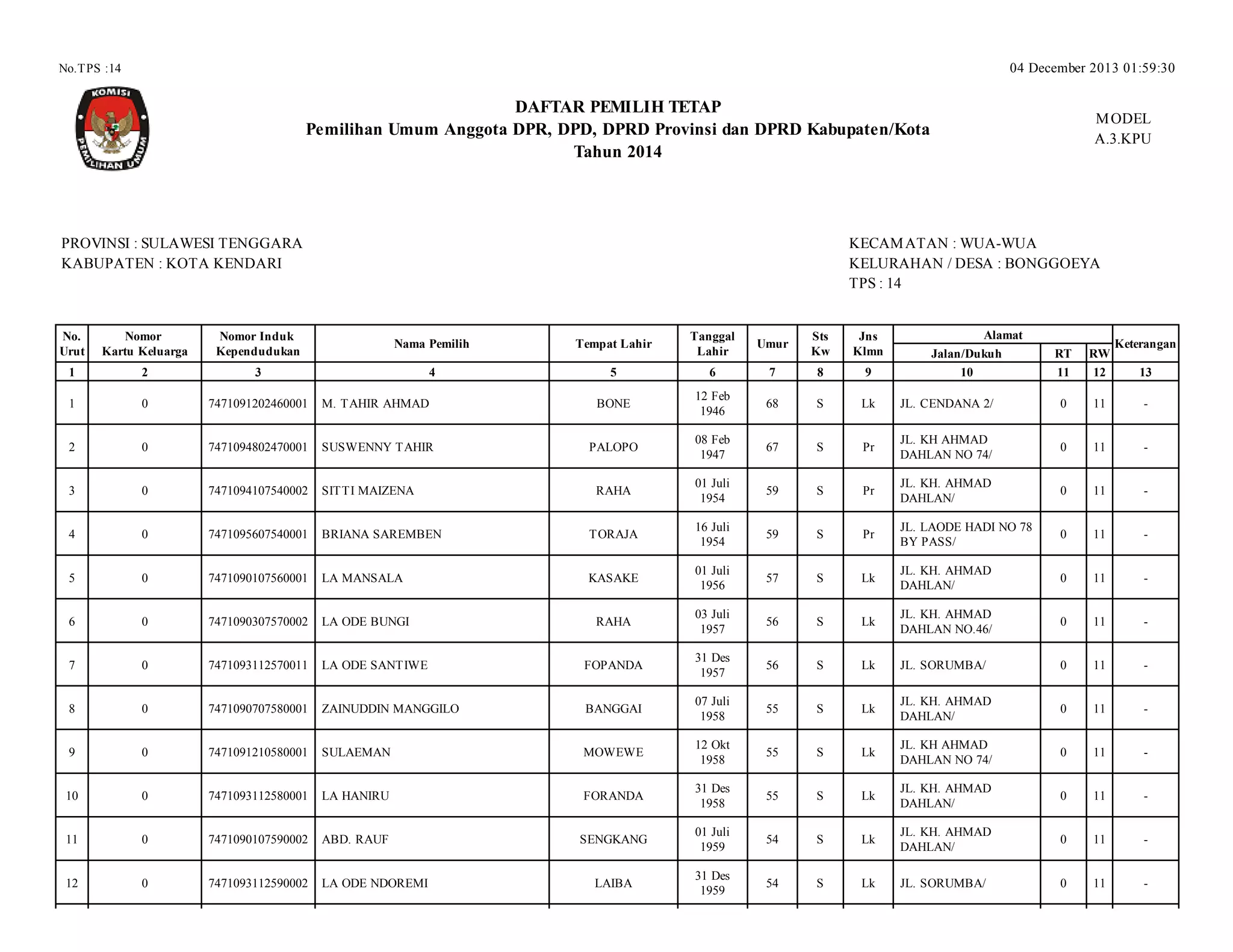 Pemilihan Umum Anggota DPR, DPD, DPRD Provinsi dan DPRD Kabupaten/Kota