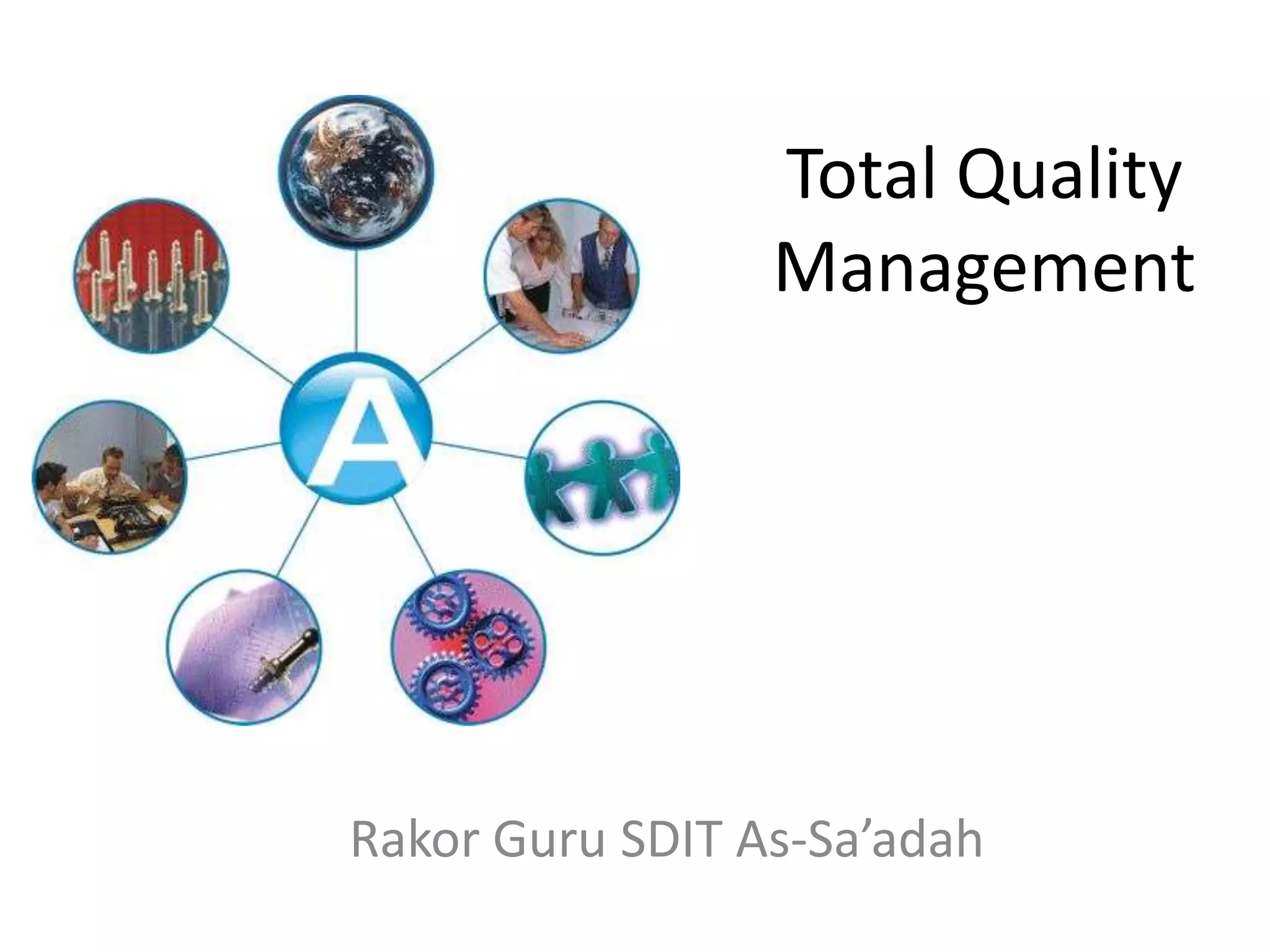 Dokumen ini membahas tentang Total Quality Management (TQM) sebagai filosofi dan metodologi untuk mengelola perubahan dan meningkatkan prestasi kerja secara berkelanjutan. TQM menekankan perlunya perbaikan budaya kerja, keterlibatan semua orang, dan hubungan yang baik antara pimpinan dan staf. Ciri-ciri mutu yang penting termasuk ketepatan waktu, akurasi, kesopanan, dan tanggung jawab terhadap keluhan pelanggan.