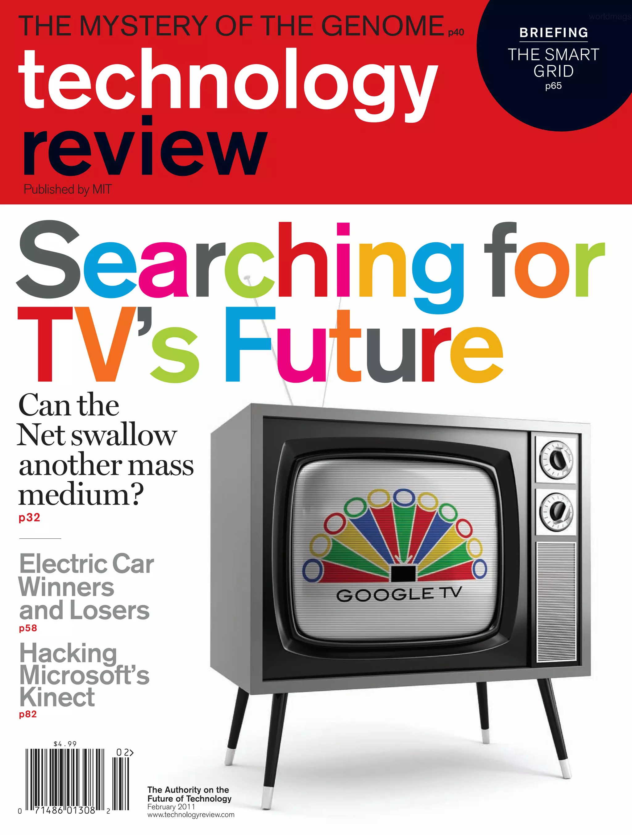 This document is the table of contents for the February 2011 issue of Technology Review magazine. It lists various articles in the issue, including searching for the future of television, the impact of mapping the human genome after 10 years, whether electric vehicles will succeed, rebuilding architecture with new software, and hacking the Microsoft Kinect. It also lists various technology briefings, reviews, and news from the labs. The document provides a high-level overview of the various topics and stories covered in this issue of the magazine.