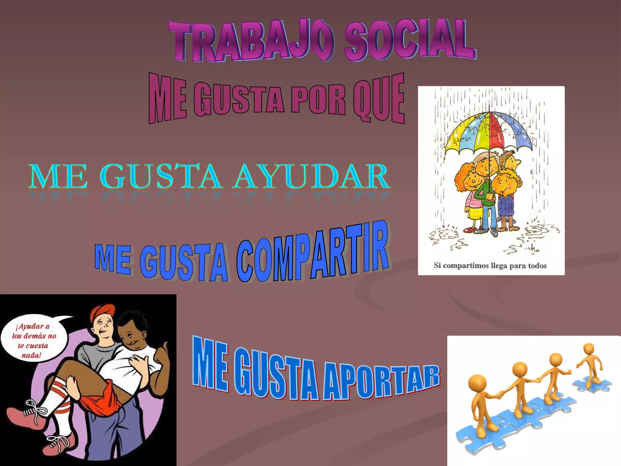 This document expresses that social work is enjoyed because the person likes contributing, sharing, listening, supporting people, and solving problems. They see themselves as responsible and committed, and they enjoy providing guidance to others.