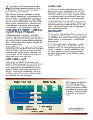 Teledyne Analytical Instruments has developed the series 8800 of trace moisture analyzers using hyper thin film (HTF) aluminum oxide (Al2O3) sensing technology, which provides increased sensitivity, stability, and faster response time compared to conventional sensors. The unique design of HTF sensors allows for greater accuracy in detecting trace moisture levels while reducing the need for frequent recalibration. This document outlines the technical specifications, benefits, and operational principles of the 8800 series systems, which are suitable for various applications requiring precise moisture detection.