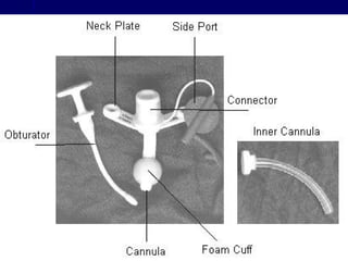Tracheostomy is an opening created in the anterior wall of the trachea to allow direct access to the airway. It has several purposes including bypassing upper airway obstructions, removing secretions, and providing assisted ventilation. The document discusses the history, types, indications, technique, and complications of tracheostomy. The key points are that tracheostomy can be emergency, elective, or permanent; common indications are respiratory obstruction, retained secretions, and respiratory insufficiency; and potential complications include bleeding, infection, and tracheal stenosis.