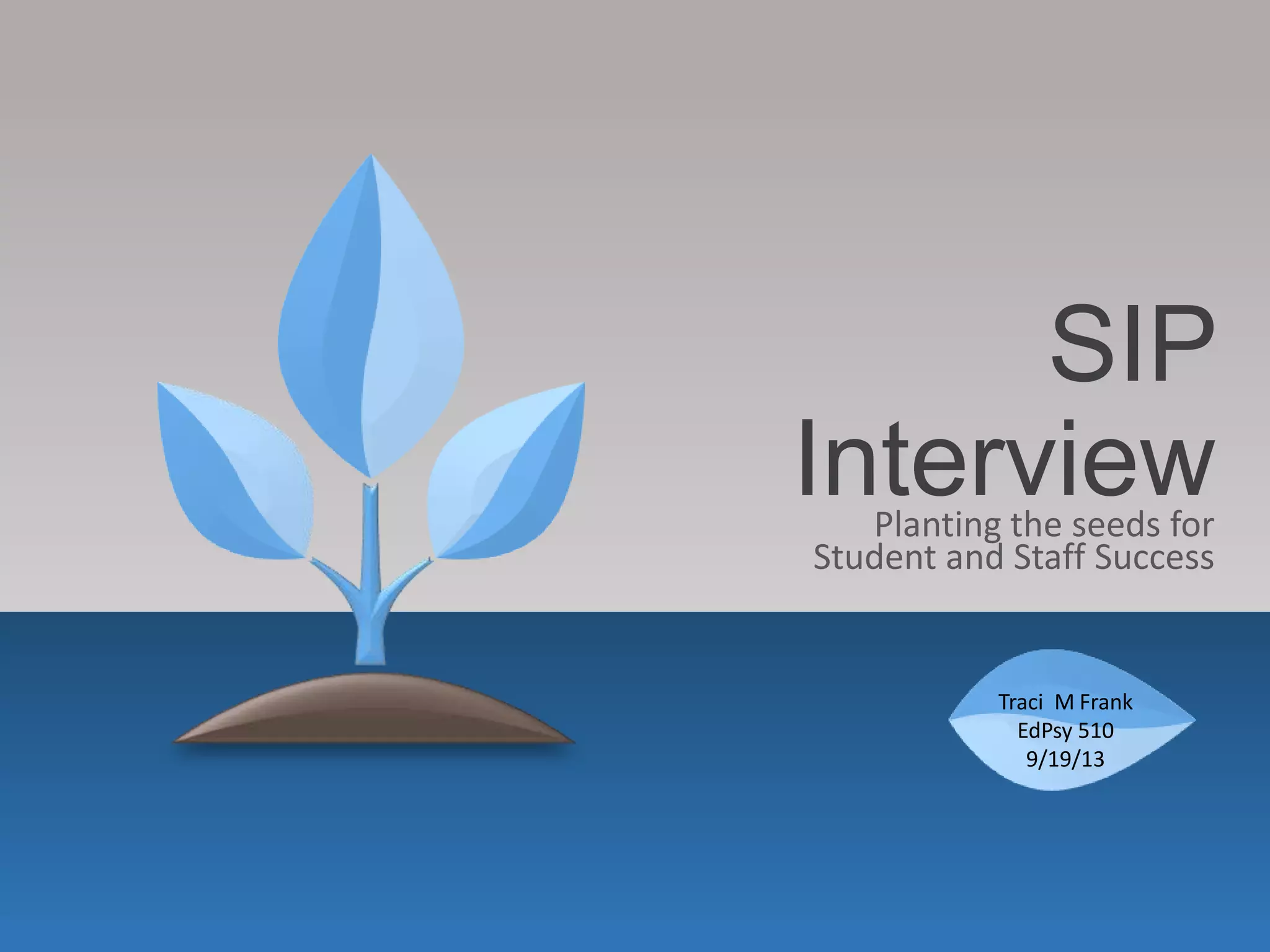 The document outlines the steps to develop, implement, and maintain an effective School Improvement Plan (SIP). It discusses assembling a leadership team to analyze student achievement data and create a plan. The plan includes professional development opportunities and time for teacher teams to frequently meet to focus on student achievement. It also notes the importance of revisiting and modifying the plan as needed while keeping the mission and vision a priority.