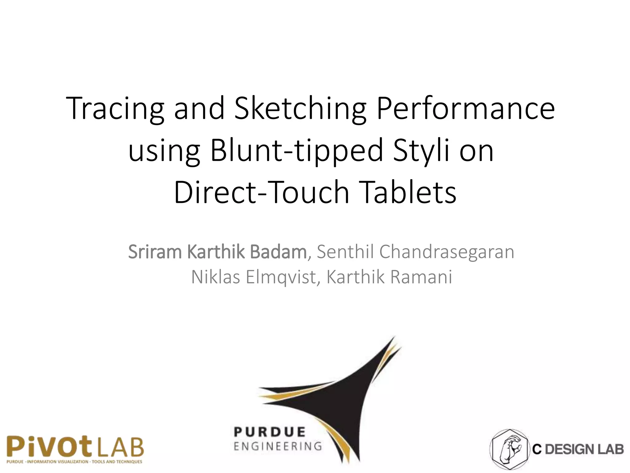 This study examined tracing and sketching performance using blunt-tipped styli on direct-touch tablets compared to using fingers. 14 participants performed tracing and sketching tasks with 3 different input methods. Tracing was faster, had fewer failures, and participants felt more comfortable using a blunt stylus compared to fingers. Sketches drawn with a blunt stylus were rated higher quality by crowdsourced voters. A follow up study with 6 participants directly compared blunt and sharp styli, finding sketches were selected 3 times more often when using a blunt stylus. The findings provide evidence that blunt styli can better support tracing and sketching tasks on direct-touch tablets compared to fingers or sharp styli.