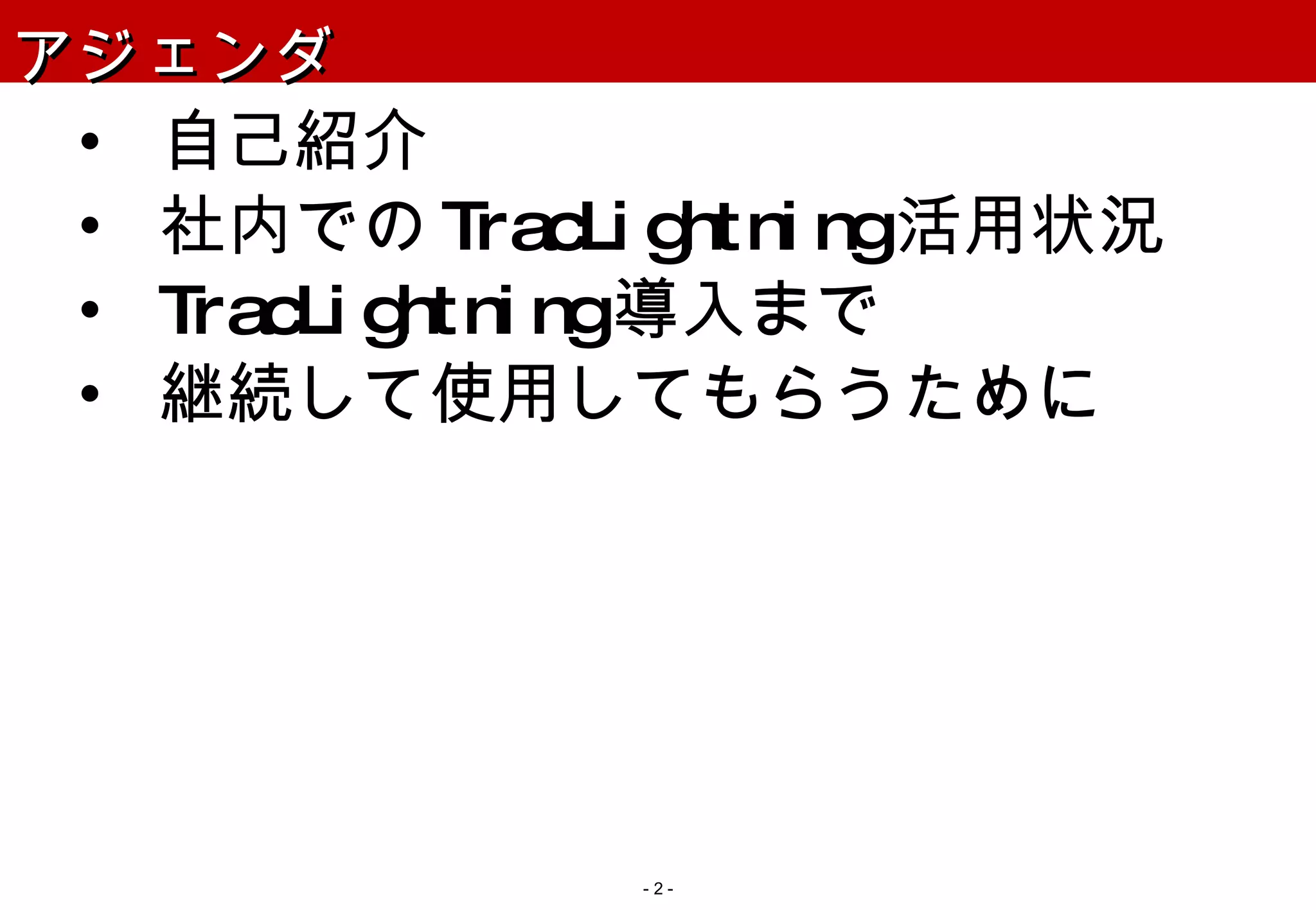 Trac Lightningの社内標準化と継続的な運用のために PDF