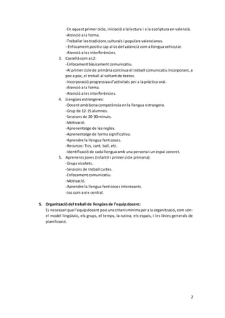 5. Organització del treball de llengües de l’equip docent: