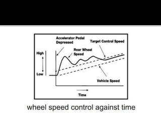 Traction control systems help vehicles maintain motion on slippery surfaces by regulating wheel spin. They can manage traction through torque reduction methods like adjusting fuel/ignition or using the brakes. Traction control is beneficial for accelerating in low-grip conditions as it prevents wheel slip and allows for better use of available traction compared to without traction control. It improves vehicle control and handling on low traction surfaces.