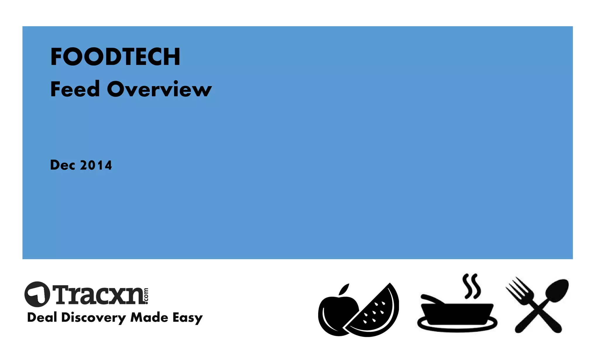 The document provides an overview of the foodtech sector and subsectors within foodtech that have seen investment activity. It discusses deals and funding within subsectors such as dine out/restaurant discovery and booking apps, grocery delivery, recipe box subscriptions, and internet-first restaurant brands. Key investors in various foodtech companies are also highlighted.