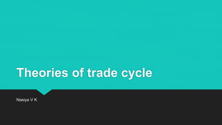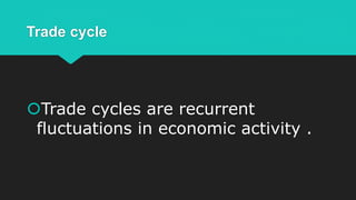 Hawtrey's monetary theory argues that trade cycles are caused by expansions and contractions in bank credit and interest rates over time. When interest rates are low, investment and economic activity increase, but banks eventually raise rates, causing recessions.