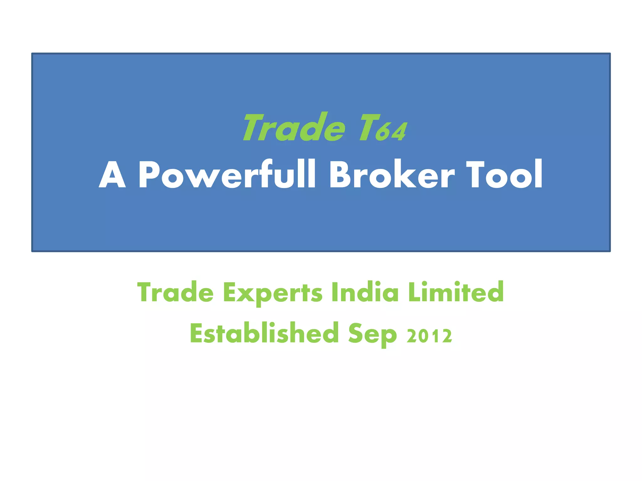 Trade Experts India Limited, established in September 2012, is an end-to-end exchange product development company that focuses on broker and trader tools, including advanced trading terminals and CRM solutions. The firm offers products for multi-account management, trade copying, and customizable trading solutions, utilizing artificial intelligence to enhance trading experiences. Their tools support various allocation methods and are designed for fund managers to efficiently manage multiple accounts and trades simultaneously.