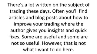 The document emphasizes the importance of full commitment in trading, whether day trading or swing trading, warning that without daily dedication, traders risk failure. It notes that many retail traders lack the necessary dedication and suggests that without immersion in the market, traders cannot effectively develop their skills or strategies. The author encourages traders to assess their commitment level through specific questions and highlights that a lack of commitment can lead to wasted time and money.
