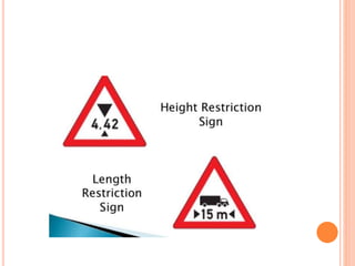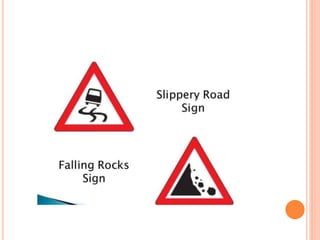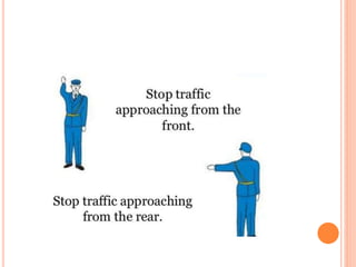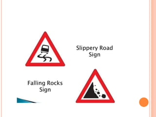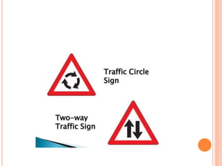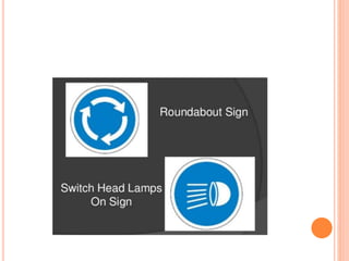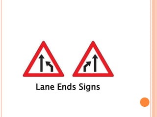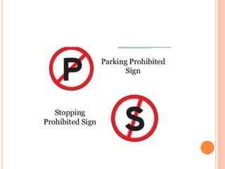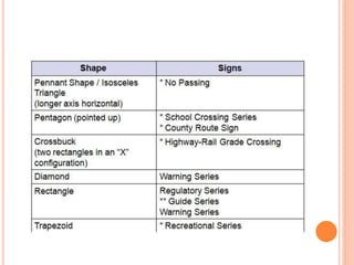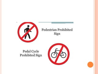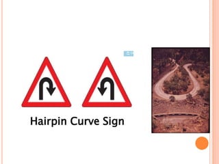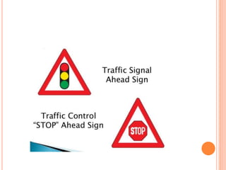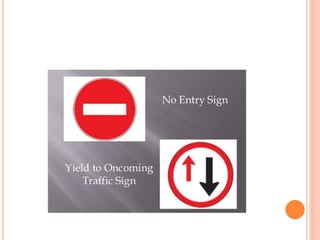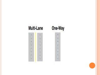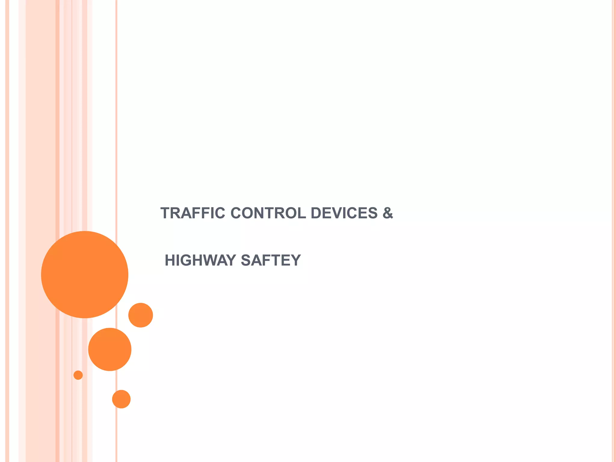 Traffic control devices and markings are used to promote highway safety by regulating, warning, and guiding traffic. They include signs conveying regulatory, warning, or guidance messages through words and symbols, as well as pavement markings delineating traffic flow. An effective traffic control system satisfies the principles of being needed, clear, commanding respect, and allowing adequate response time. Accident investigations systematically identify causal factors without blame, collecting information to determine trends and prevent future accidents.