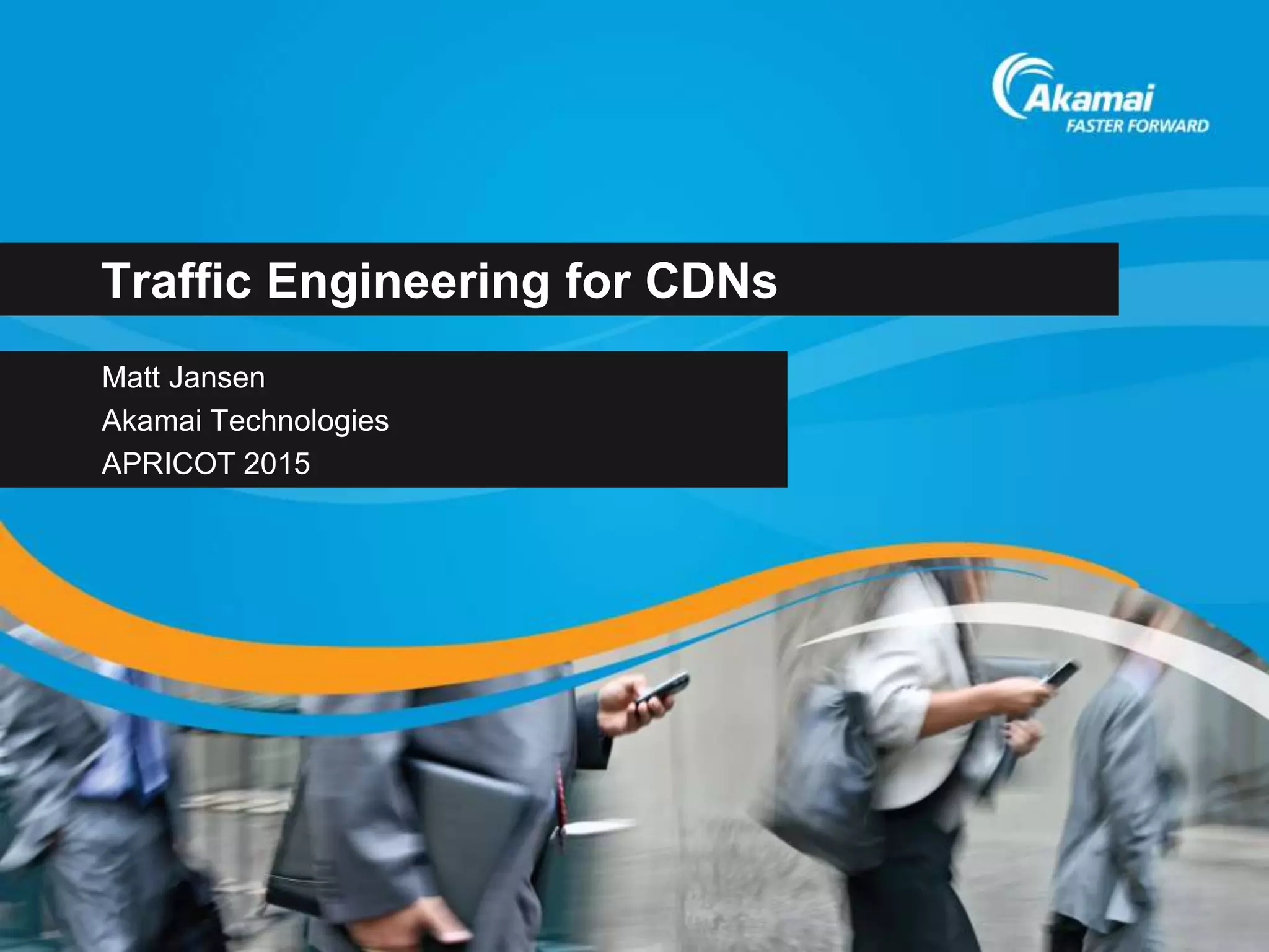 The document discusses how content delivery networks (CDNs) use DNS-based traffic engineering and BGP routing interactions between CDNs and internet service providers (ISPs). It provides examples of how ISPs attempting to influence CDN traffic routing through BGP techniques like more specific route announcements or filtering can backfire and result in traffic blackholing or long term revenue loss for the ISP or upstream transit providers. The document recommends communication between CDNs and ISPs to achieve traffic engineering goals through techniques like embedded clusters instead of assumptions about routing behavior.