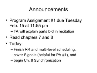 – Finish RR and multi-level scheduling,