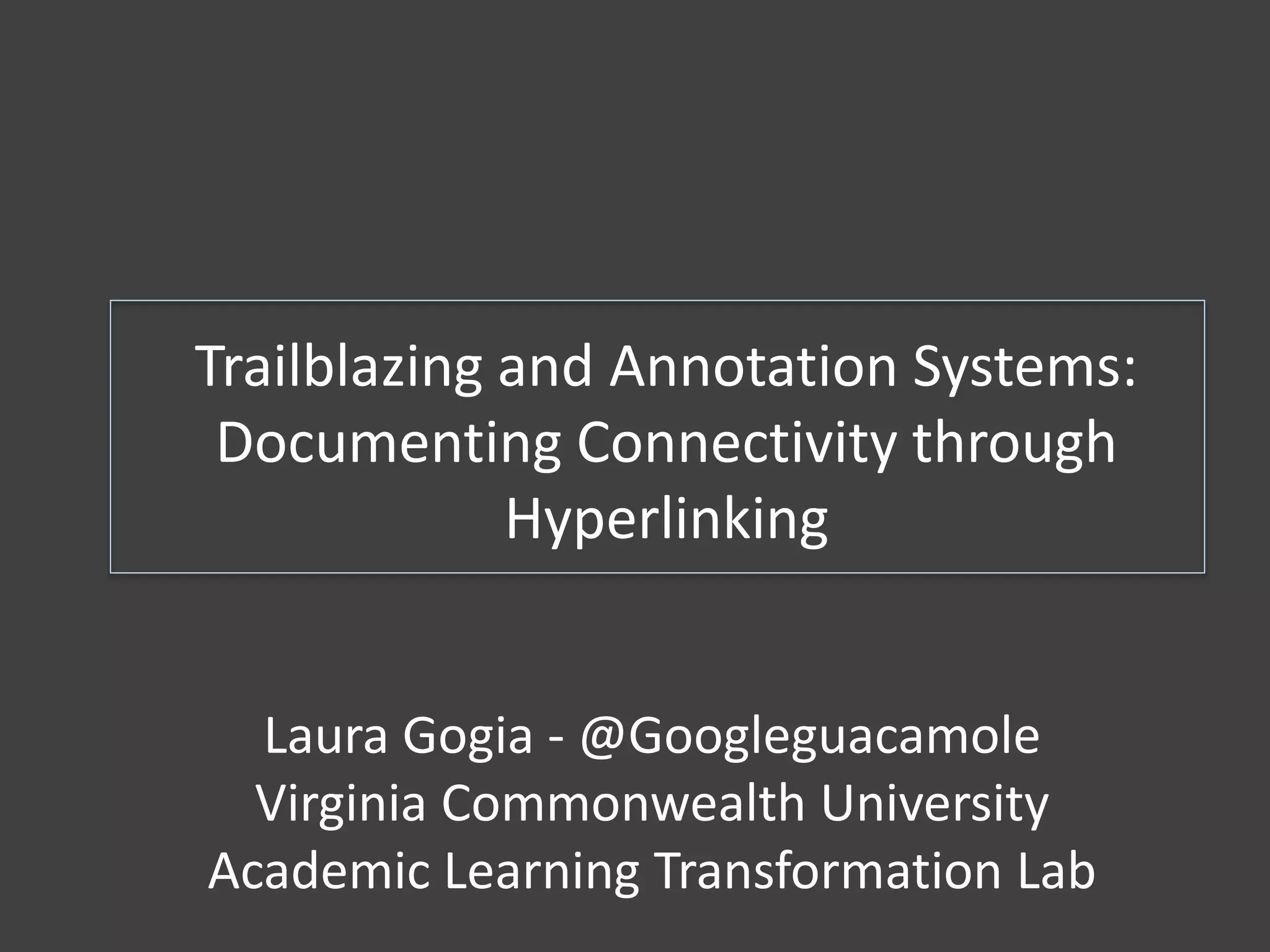 This document discusses using annotation systems and hyperlinking to document student connectivity in online courses. It summarizes a study analyzing student blog posts and tweets from 4 courses with 300+ participants. The study found students used hyperlinks to connect ideas across courses, provide context and examples, and cite references. Students linked to news, journals, websites, videos, and each other's work. Posts demonstrating high connectivity varied hyperlink types. Images and videos promoted connectivity when students created them and added context. The document concludes annotation systems like hyperlinking can support student connectivity, but instructors should discuss expectations and provide feedback to help students use hyperlinking skills.