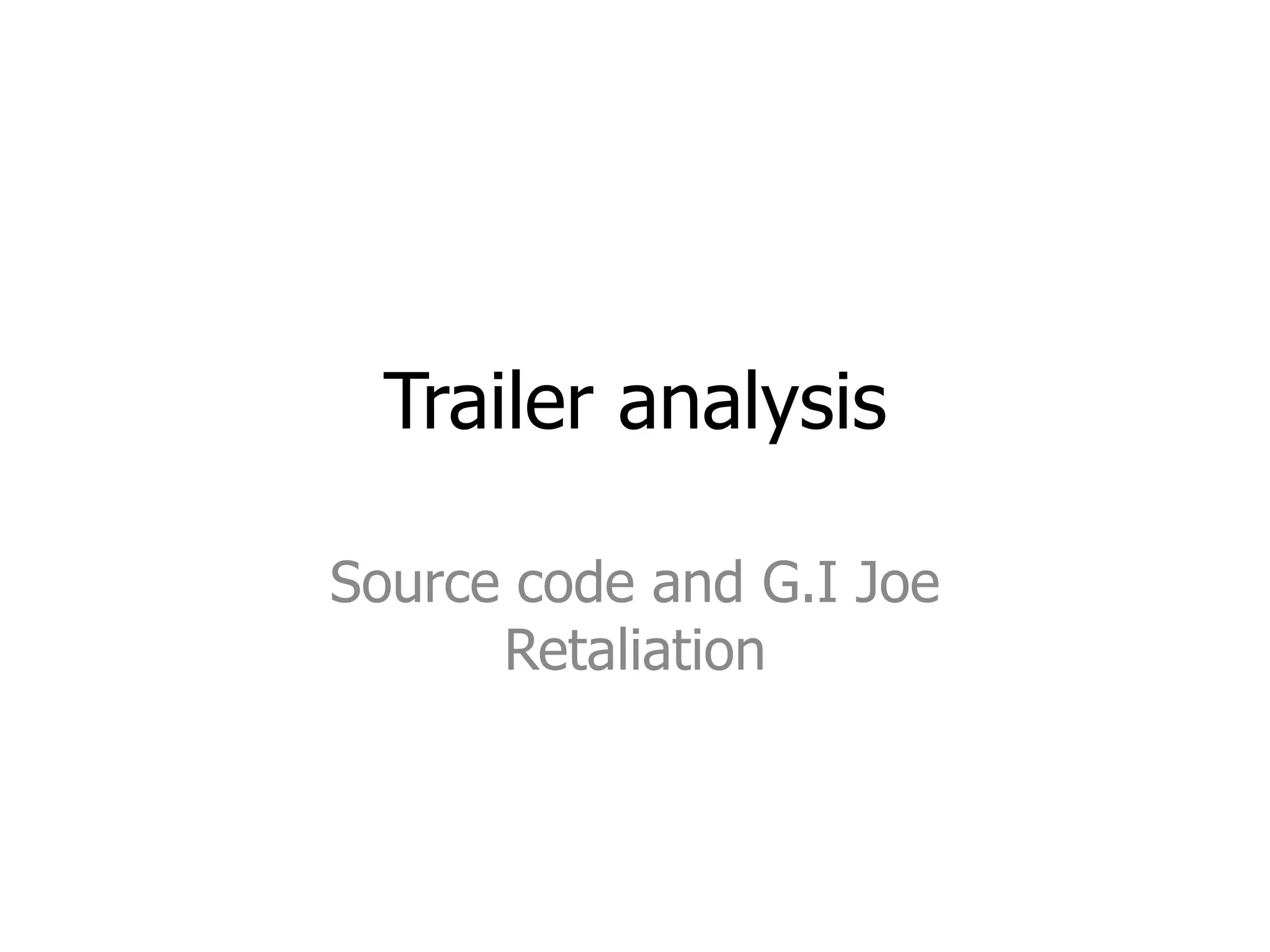 The trailer for G.I. Joe: Retaliation provides a brief outline of the beginning of the movie through dialogue and scenes. It reveals some of the main plot points but does not give away the identity of the bomber. The trailer for the original G.I. Joe movie shows clips from throughout the film in non-chronological order, includes a voiceover, and reveals more of the plot earlier on. Both trailers represent diversity in gender, ethnicity, age, and address important issues while generating interest without revealing too much of the story.
