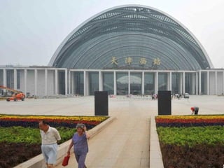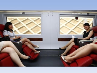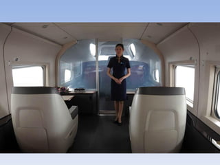 文档描述了北京南站和上海虹桥站的高铁服务,包括乘客的舒适体验和先进设施。提到了高铁驾驶员和检修人员的到位,以及自动售票机的位置。