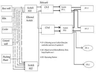 The document summarizes Kuldeep Singh Rao's practical training presentation at Binani Cement Ltd in Binanigram, Sirohi, Rajasthan. It describes the cement manufacturing process including raw material extraction and preparation, kiln processing to form clinker, cement milling, and packaging. It also discusses the instrumentation used in the automated plant to measure and control parameters, including the distributed control system.
