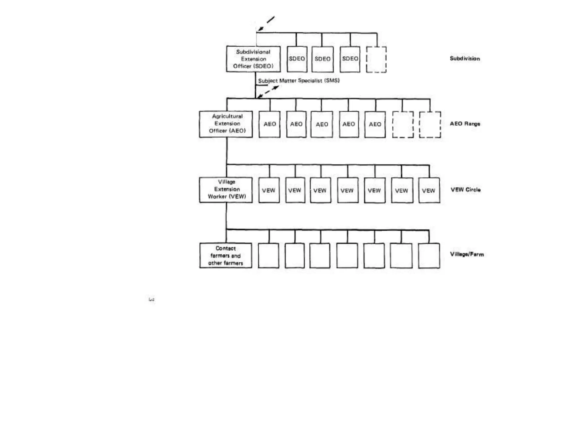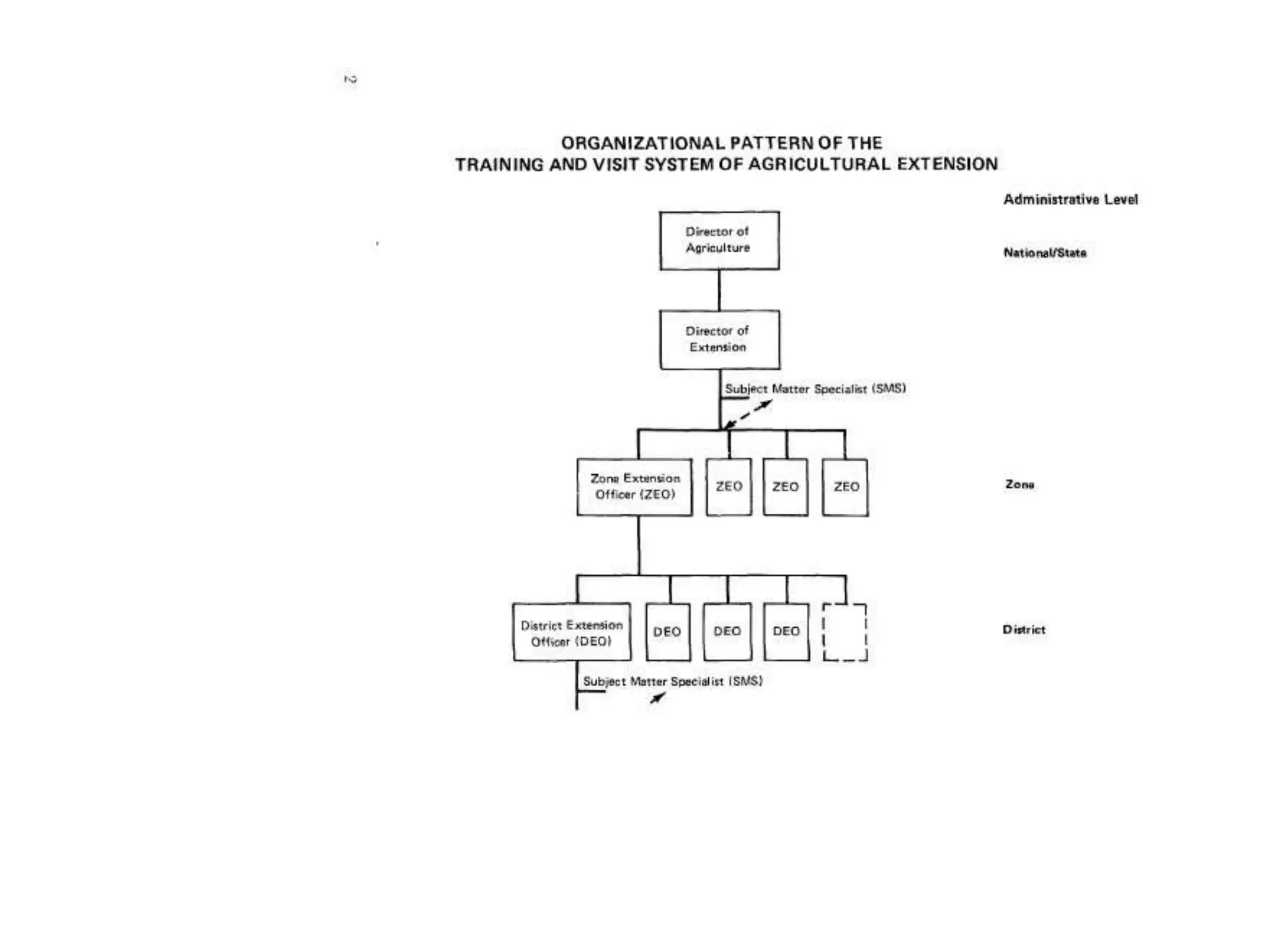The Training and Visit (T&V) system is an agricultural extension approach that brings subject matter specialists and farmers together to facilitate farming operations and help farmers increase production. It aims to build a professional extension service to guide farmers through agricultural production and income growth. The T&V approach was implemented to ensure extension agents focus solely on extension, extension is closely linked to research, training is continuous, work is time-bound, and farmer orientation is maintained.